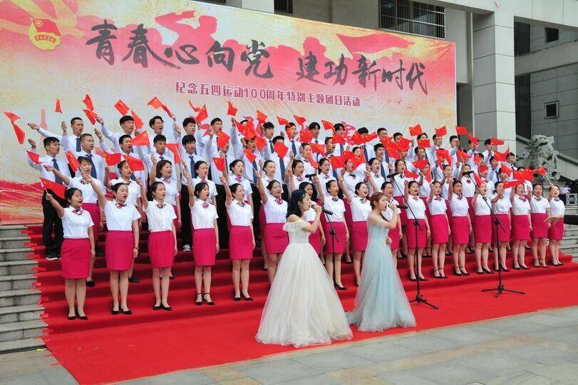 本网讯通讯员程蓉 肖艳 陈赛 摄影张亦飞 王金凤 报道 5月21日下午,由beat365在线唯一官网团委主办的“青春心向党,建功新时代”红歌比赛暨五四表彰(纪念五四运动100周年主题团日)在图书馆门口举行。党委副书记、院长马大奎,党委委员、纪委书记李高东,党委委员、副院长童加斌莅临比赛现场观看指导红歌比赛,来自各个学院的表演人员共计600余人,超过1000余学生到现场观看比赛。