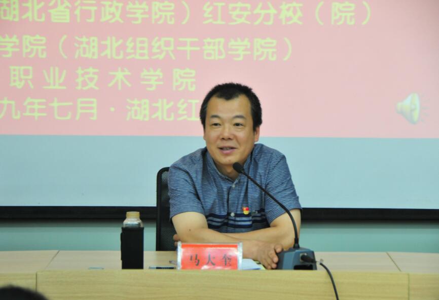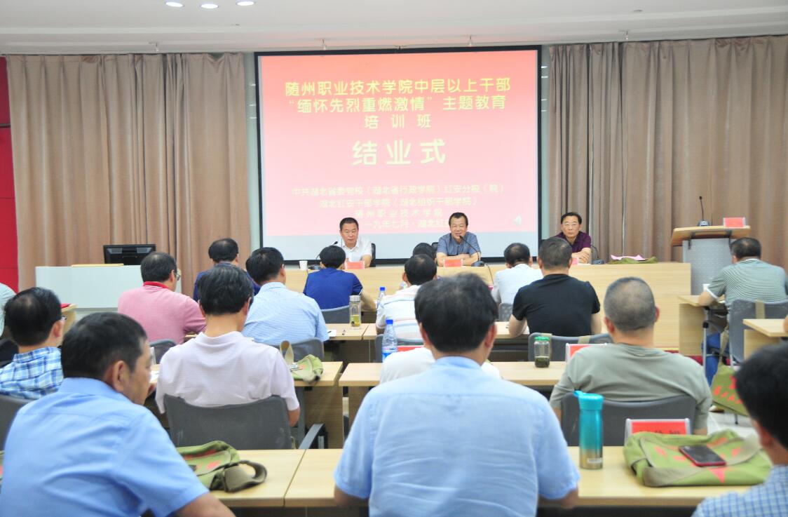 2019年7月14日上午,beat365在线唯一官网中层以上干部“缅怀先烈,重燃激情”主题教育培训班在红安干部学院综合楼101落幕。结业式由学院纪委书记、党委委员李高东同志主持,红安干部学院学员组织处处长罗华明、beat365在线唯一官网党委副书记、院长马大奎同志出席了此次结业式。