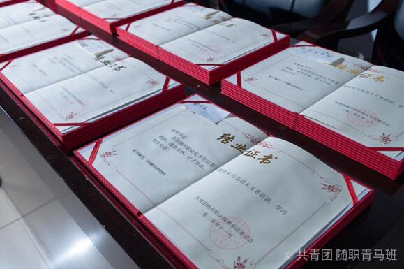 结业仪式上小青马和老师们一同回顾了两个月以来的学习历程,部分学员代表分享学习心得,优秀学员代表杨晋:“也许我不是最优秀的那一个,但我骄傲于做更加自信的青马人。”本期培训班助教朱逸城同学谈到青马班集体,他说:“一个人可以走得很快,但一群人才能走得更远。”