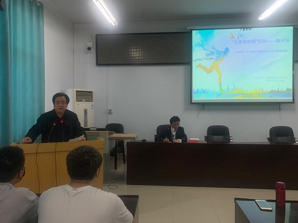 为深入贯彻习近平总书记系列讲话精神,讲好“四史”,唱响主旋律,beat365联合新华书店随州分公司,由教务处组织,特邀知名专家学者来学院开展“名家进校园”系列讲座活动。