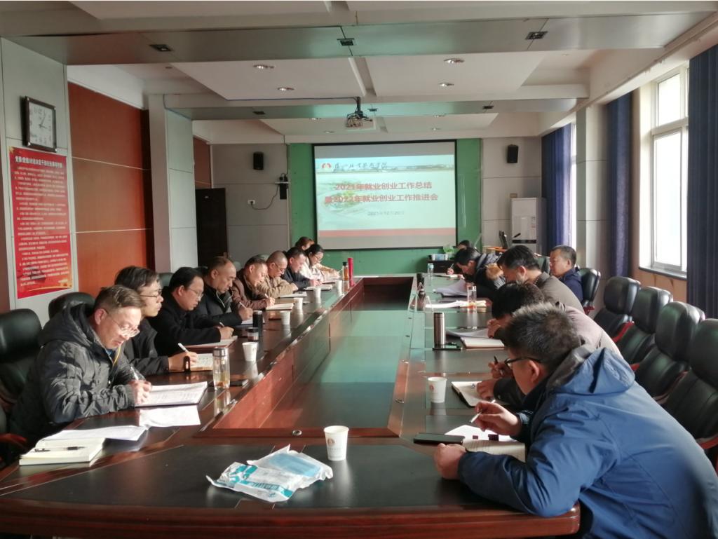 就业指导中心负责人夏章建对学校2021届毕业生创业就业工作作了简要总结,并介绍了学校2022届毕业生创业就业工作方案;武装部负责人张文武介绍了学校毕业生征兵工作以及近期工作安排。