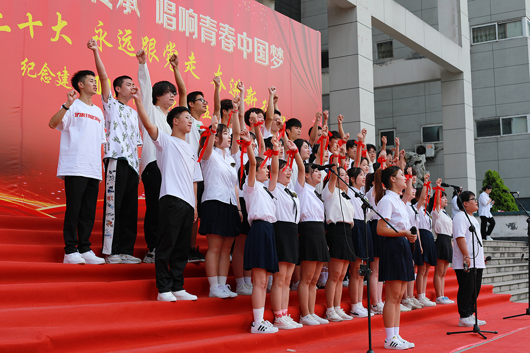 对党忠诚、奋发有为、昂扬向上的精神永存心中!活动在两位主持人的开场白下拉开了帷幕,首先是来自建工学院的同学们为大家演唱的歌曲《不忘初心》。接着一首又一首的经典红歌响彻广场,歌声中抒发的革命激情,如排山倒海般的涌来,新时代的大学生在歌声中接受洗礼。同时,舞台上各院系不同风格的演出服异彩纷呈,歌唱时气势如虹、动作协调互相配合,体现了良好的团队合作精神。最后,活动在《我和我的祖国》高亢的歌声中结束。