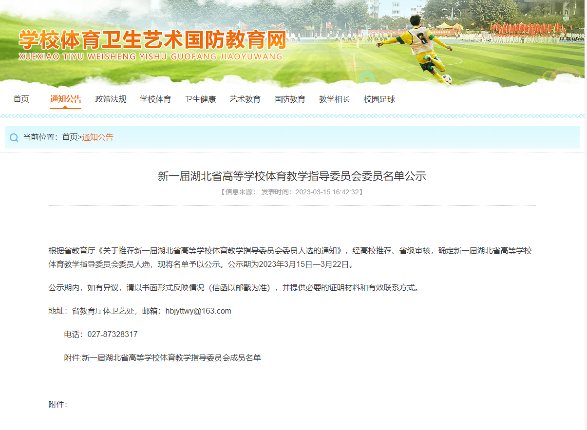 3月15日,学校体育卫生艺术国防教育网公布新一届湖北省高等学校体育教学指导委员会委员名单,beat365公共课部徐明教授成功入选公共体育组委员,本次入选公共体育组的委员名单中高职院校仅有4所。
