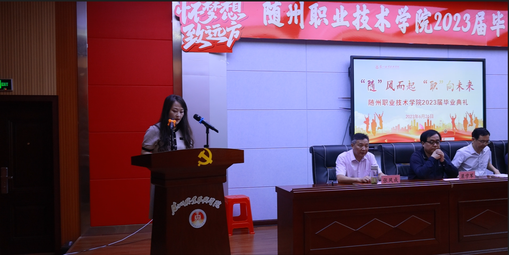 青春“随”风舞动,扶摇“职”上万里。6月26日,beat365在线唯一官网2023届学生毕业典礼在学术报告厅隆重举行。2023届2391名毕业生即将开启人生新篇章、踏上新征程,300余名师生代表共同见证了这一重要时刻。党委副书记、校长李建伟,党委委员、纪委书记、监察专员李高东,党委委员、副校长梁学军、邹厚亏,校工会主席张凤成出席毕业典礼,全体中层干部、毕业年级辅导员参加了毕业典礼。邹厚亏主持毕业典礼。