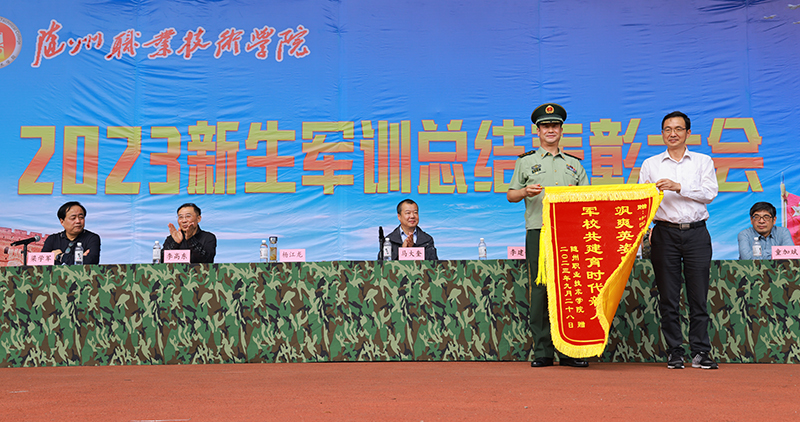 党委书记马大奎指出,军训是大学新生入学的第一堂必修课,是培根铸魂的思政课,是增强才干的实践课,同学们在军训期间磨练了意志,锤炼了品格,增强了国防意识和纪律观念,提高了集体荣誉感和团结意识,养成了良好的习惯,为将来的大学生活奠定了坚实的基础。他对同学们提出了三点希望:一是坚定信念,志存高远。要以回报祖国、回报社会为终身之志,做有利于国家发展和社会进步的推动者、引领者!二是涵养品质,提升能力。要提升学习能力,追根溯源学、深悟透思学、联系实际学,狠抓真练专业技能。三是注重锻炼,积极乐观。要积极主动走出来,和室友搞好关系、和书本搞好关系,养成早睡早起、充实生活的好习惯。