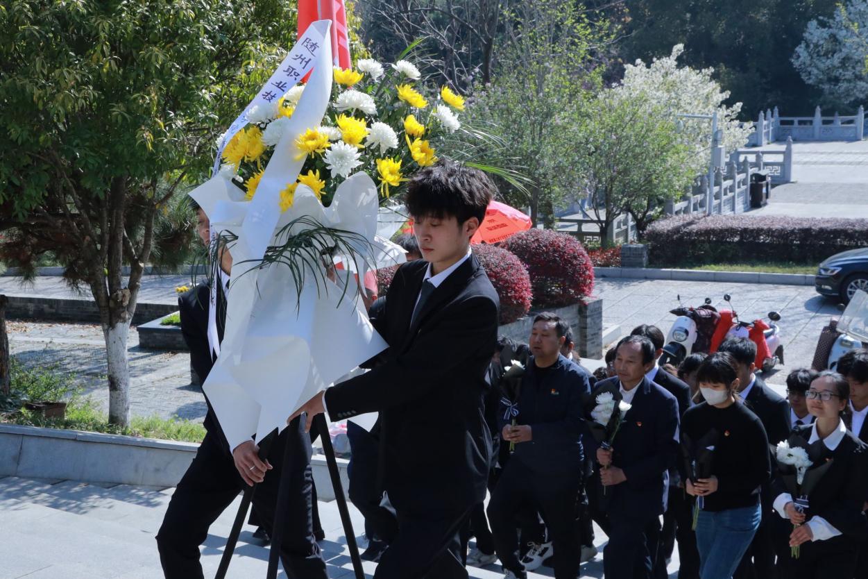 又是一年清明时,无限哀思祭先烈。3月29日,beat365专用汽车产业学院学生工作支部的全体教师党员以及第四期青马班学员、学生会干部代表到随州烈士陵园革命烈士纪念碑广场,开展以“缅怀革命先烈 传承红色精神”为主题的清明祭扫活动。