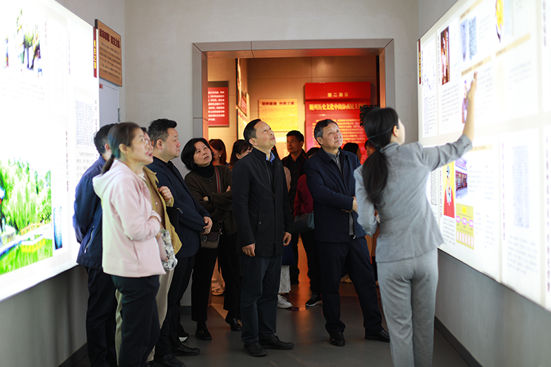 在文史馆讲解员的带领下,全体成员参观了“人民政协光辉历程”“随州历史文化中的协商民主基因”“随州巨变”“随州政协发展历程”“凝心聚力共谋发展”五大主题板块。展览通过详实的图文资料实物,借助声光电现代科技手段,大力弘扬中华优秀传统文化和革命文化,深入宣传中国共产党领导的多党合作和政治协商制度,全面展示新中国成立后随州发生的翻天巨变,以及人民政协在随州经济社会发展中所发挥的重要作用和作出的历史性贡献,充分体现了政协特点、彰显了随州特色。在讲解员生动的讲解下,大家被一帧帧照片、一幅幅手稿、一件件实物、一个个视频深深吸引,不断认真驻足观看。