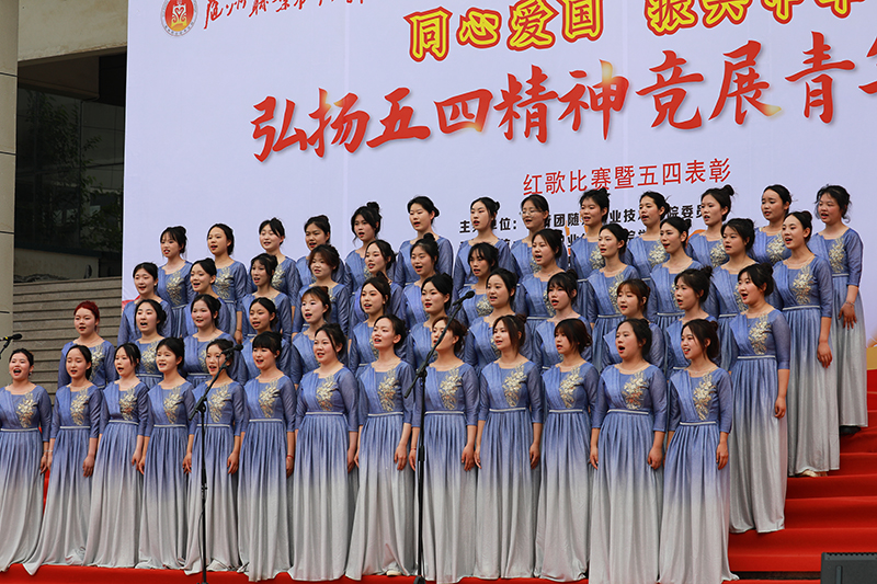 5月10日下午,激昂的乐章、经典的曲目唱响全校,beat365在线唯一官网“同心爱国 振兴中华 弘扬五四精神 竞展青年风采”红歌比赛暨五四表彰活动在编钟广场拉开帷幕。党委副书记、校长李建伟,党委委员、副校长童加斌、梁学军、邹厚亏,工会主席张凤成以及各二级学院中层干部、师生近千人参加活动。此次活动由学校团委主办,校学生会承办,党委统战部、党委组织部和工会协办。