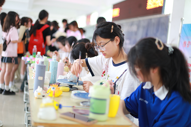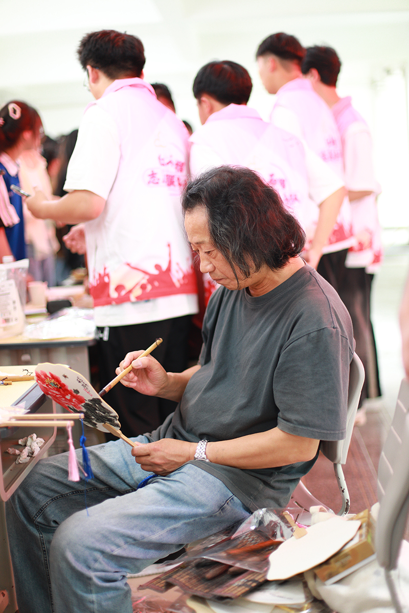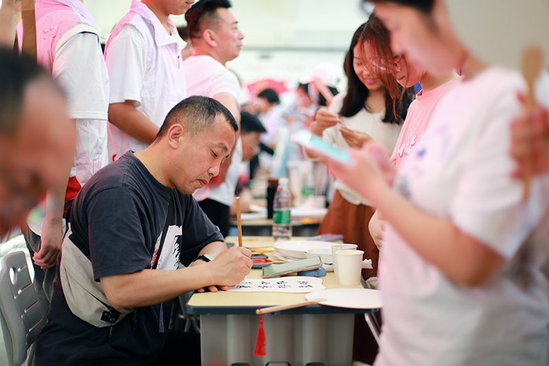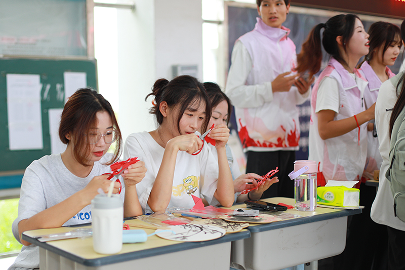 启动仪式后,beat365举办了社科文化市集活动,邀请随州市书画家现场创作扇面和书签作品,beat365留青竹刻、剪纸、陶艺手工等非遗传承工作室都在现场摆出摊位创作。红石榴志愿服务队的同学围绕中国式现代化主题随机提问,向答对的同学赠送书画文创作品。