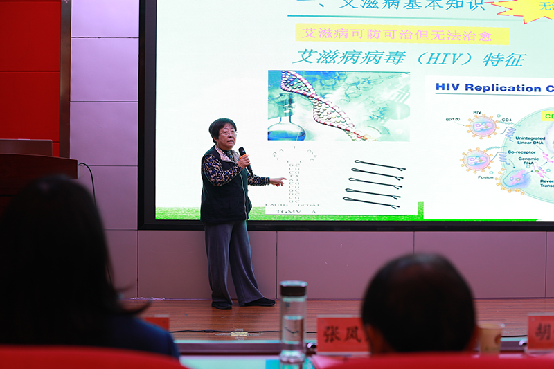 中华红丝带基金专家组成员、医学博士王璐作了专题讲座。她结合自身深厚的专业知识与传染病防治实践经验,用通俗易懂的语言让错综复杂的艾滋病病理形成过程跃然纸上,通过一系列权威数据分析,让学生们意识到自己作为健康责任第一人的重要意义,引用生活中国内外典型案例引导学生们自觉树立清晰的是非观和正确的价值观。王璐老师亲切幽默的话风寓教于乐,现场氛围异常热烈,让全场师生对防艾知识与“大健康”理念有了更全面更深入地理解。