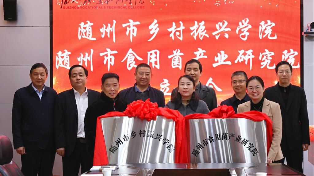 与会领导共同为“随州市乡村振兴学院”和“随州市食用菌产业研究院”揭牌。揭牌仪式后,与会领导嘉宾合影留念,并召开了建设规划座谈会。