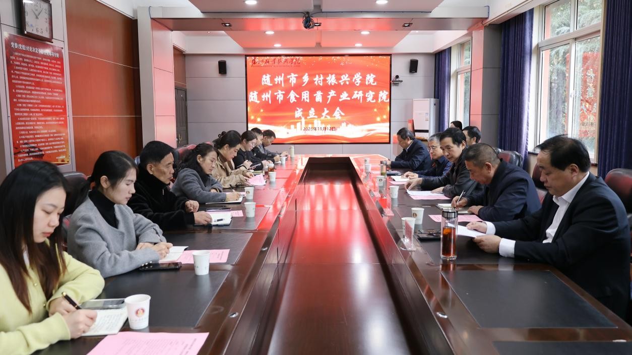 11月12日上午,随州市乡村振兴学院与随州市食用菌产业研究院成立大会在beat365在线唯一官网行知楼208会议室隆重举行。beat365在线唯一官网党委书记李建伟,市科技局党组成员、副局长孙登斌,市农业农村局党组成员、总经济师李进山,beat365在线唯一官网党委委员、副校长梁学军、邹厚亏,校工会主席张凤成等出席大会,香菇学院师生代表共同见证了这一重要时刻。