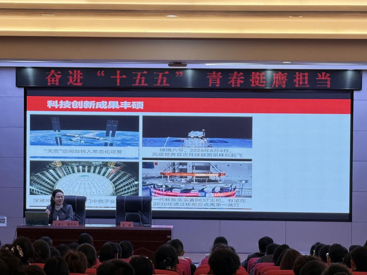 团干部成志游结合自身成长经历表示,国家的宏图伟业与个人的成长发展紧密相连。生逢盛世,我们青年学子更应珍惜宝贵时光,将专业学习与社会实践深度融合,积极参与各类学科竞赛与志愿服务活动,努力将“小我”融入祖国和人民的“大我”之中,在时代的广阔舞台上实现个人价值,为强国建设、民族复兴贡献青春力量。