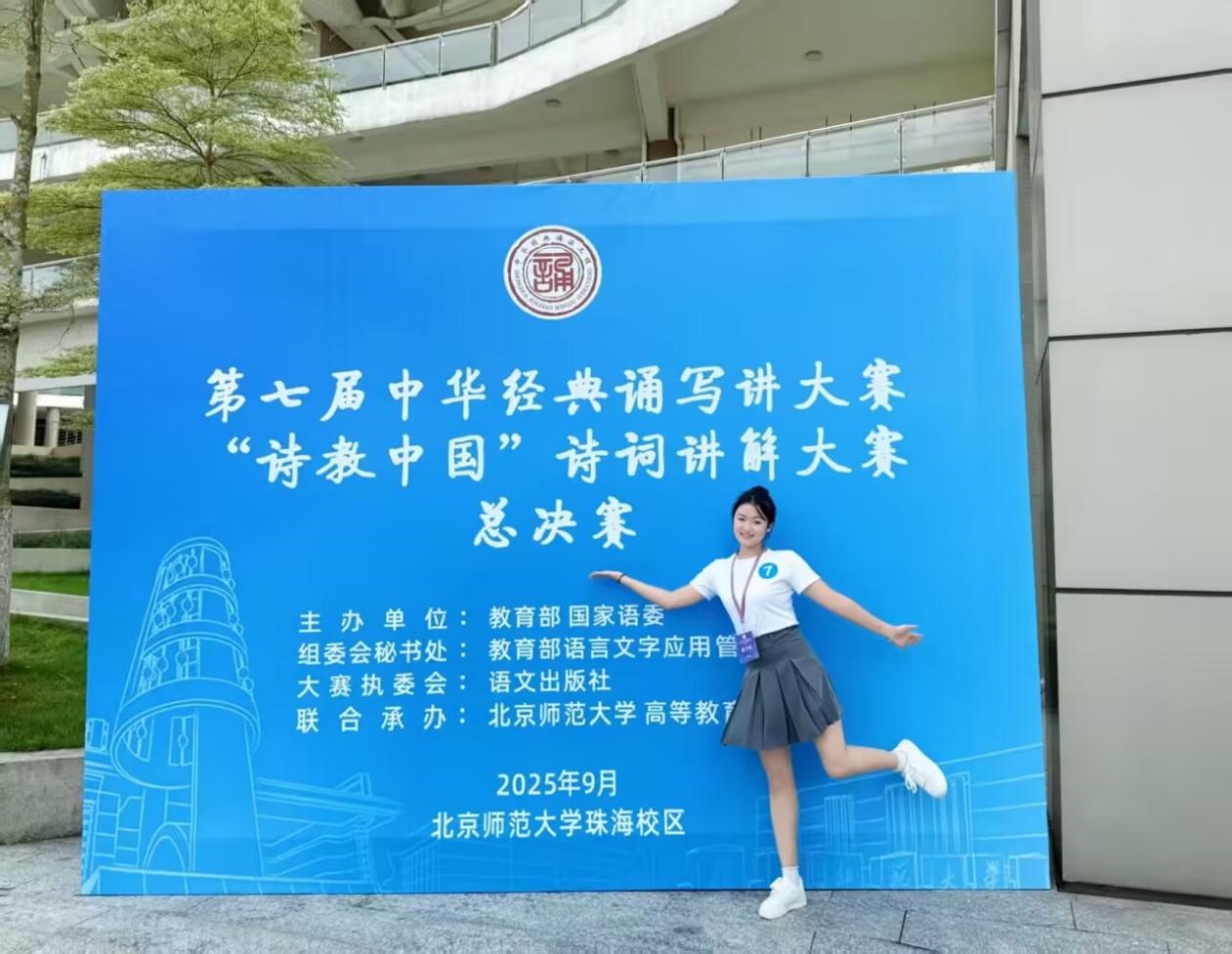 备赛期间,服装与艺术设计学院教师何瑞玉对宋雨霏同学进行了系统指导,从诗词文化背景、思想情感、讲解技巧与现场表现力等方面提供了专业辅导。宋雨霏同学认真钻研,反复锤炼讲解内容与表达方式,最终在全国总决赛中,以当代青年的视角生动诠释了古典诗词的韵味,展现了经典文化的时代活力。
