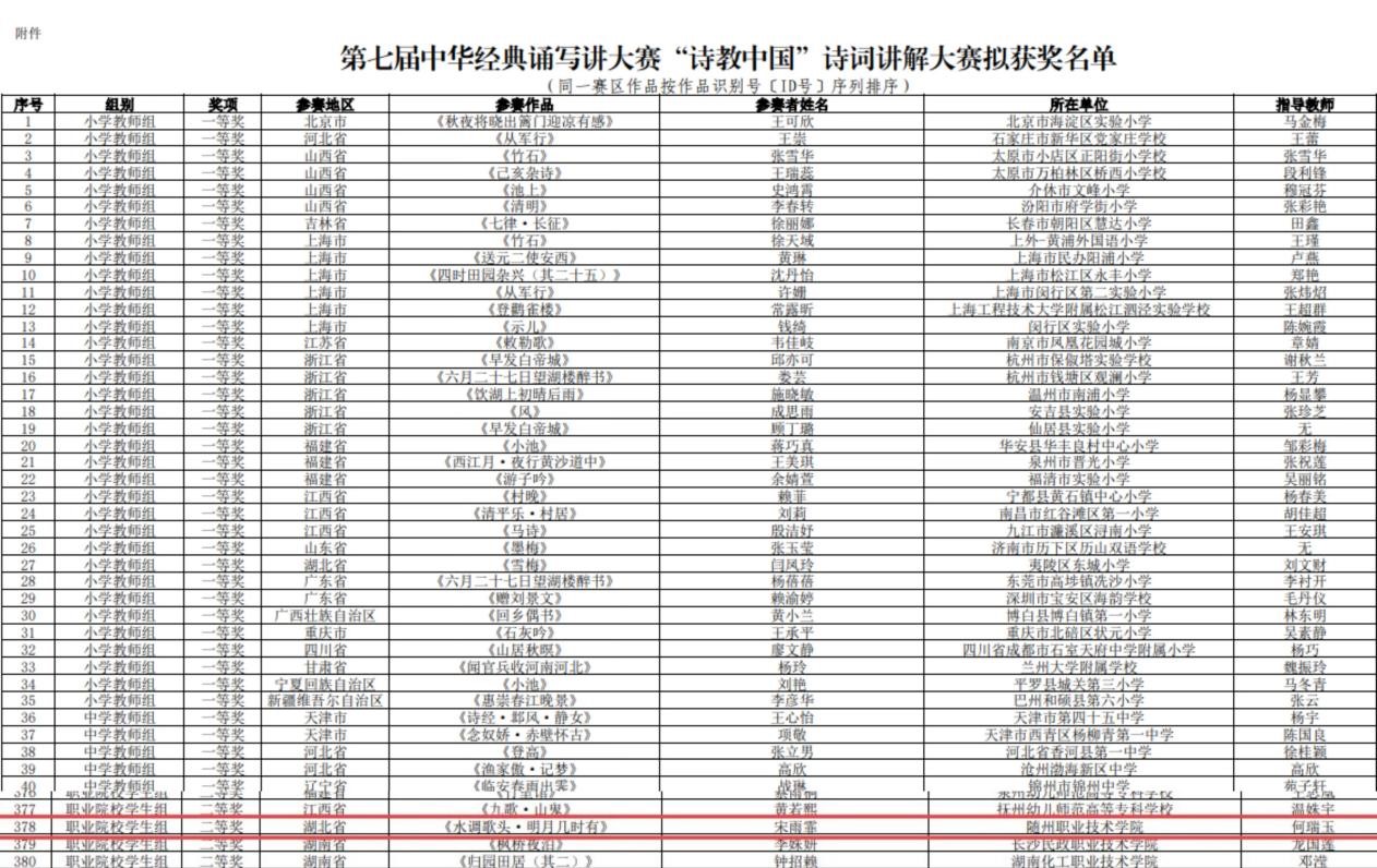 近日从第七届中华经典诵写讲大赛官方网站获悉,beat3652023级学前教育专业学生宋雨霏在教育部、国家语言文字工作委员会主办的第七届中华经典诵写讲大赛全国总决赛“诗词讲解”赛道中斩获全国二等奖。