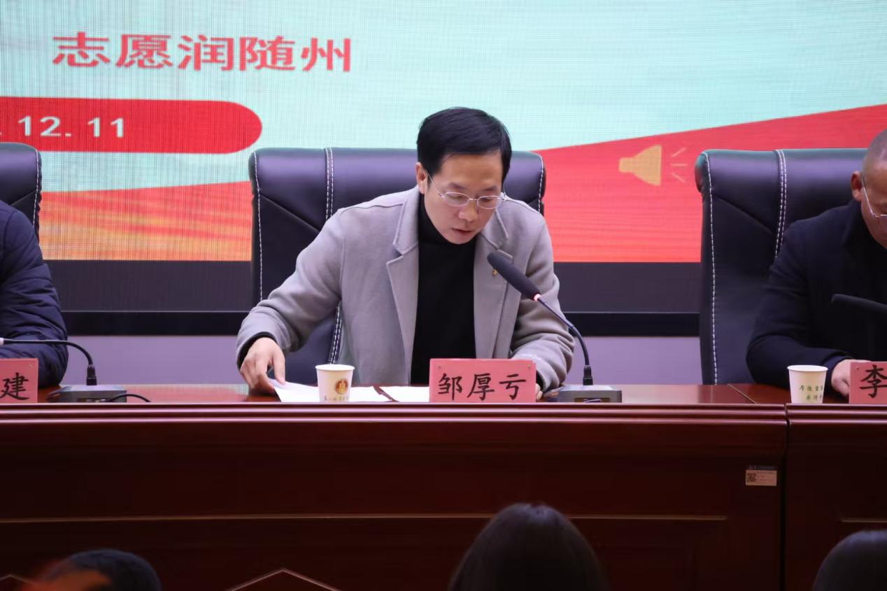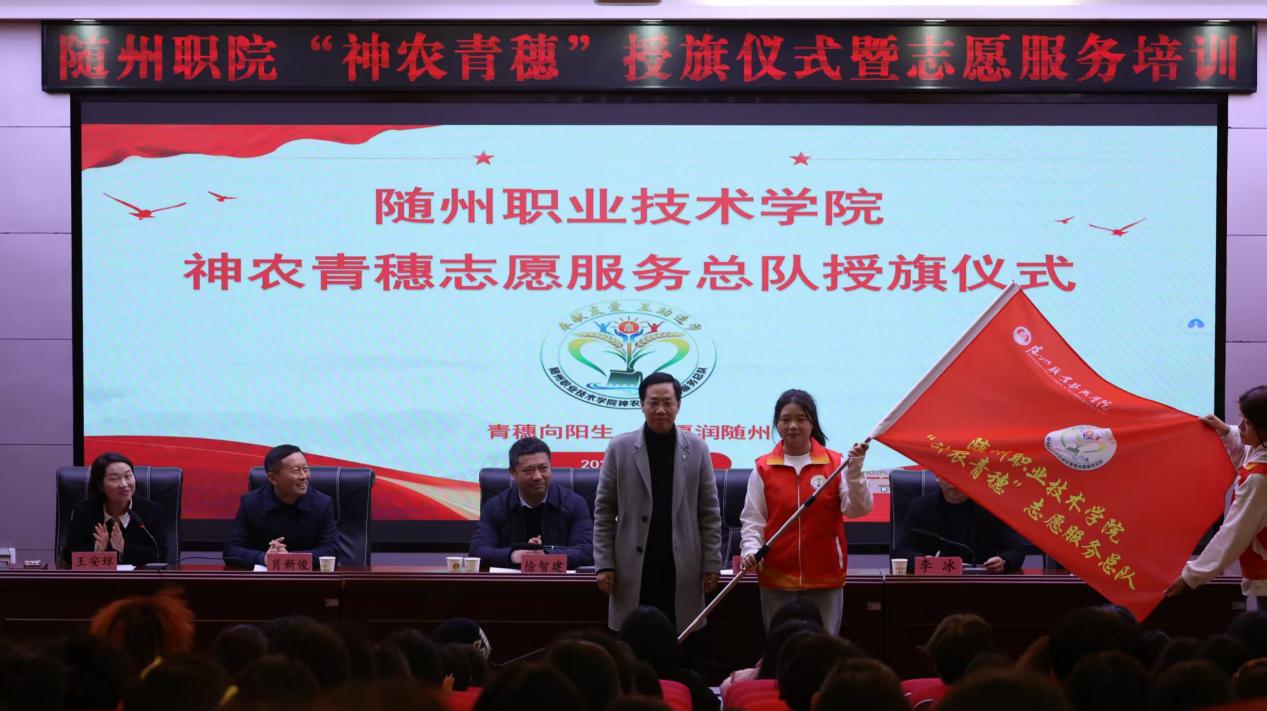 12月11日,beat365在线唯一官网在学术报告厅举行“神农青穗”志愿服务总队授旗仪式暨志愿服务能力提升培训。校党委委员、副校长邹厚亏,随州市委社会工作部四科科长徐智建,随州市志愿服务联合会会长李冰出席活动。学校党委宣传部、学生工作处、团委等部门负责人及各二级学院志愿服务队师生代表参加。