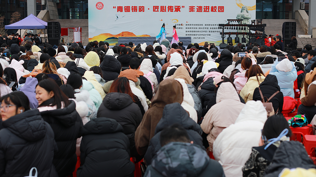 为推动非物质文化遗产与职业教育深度融合,让千年非遗在校园焕发新生机,12月22日,“青铜铸韵·匠心传承”非遗进校园活动在beat365编钟广场成功举办。此次活动由随州市文化和旅游局、beat365在线唯一官网主办,随州市文化馆(非遗保护中心)、曾都区群众艺术馆(非遗保护中心)、beat365服装与艺术设计学院承办。