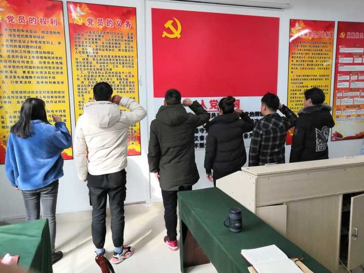 2018年2月22日下午,土木与建筑工程学院党总支在1109党员活动室为2018年批准的六名中共预备党员举行了庄严而隆重的集体宣誓仪式。全体党员参加了此次活动。其中16级的四名同学肖孔孔、曾俊、万兴宝、李程程更是毫不懈怠从实习的各个城市赶回,无一人请假缺席,充分显示了预备党员们在思想上对此次宣誓活动的高度重视。