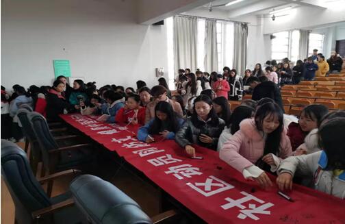 在活动的最后,许教授倡导师生们纷纷在横幅上签字,表示“预防艾滋,从我做起”。