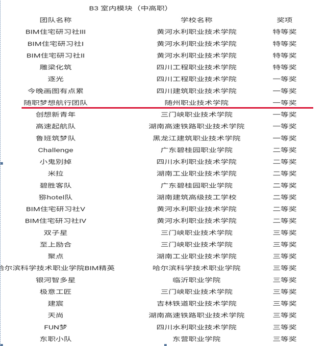 6月,黄达、徐慧子和白桦三名指导教师带领的2020级“随职梦想航行团队” 经过半年打造磨练,在2021年“鲁班杯”全国高校BIM设计作品大赛中获得一等奖。(图二)