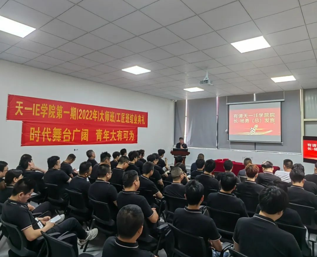 结业仪式上,杨勇对订单班学员的勤奋刻苦学习表示充分肯定,同时勉励他们,保持良好的工作生活学习习惯,永葆学习之心,对老师、导师心存感恩。王军在致辞中对天一智能对学校专业人才培养的支持表示感谢,鼓励结业学员扎根天一智能,不忘选择天一的初心,牢记贡献智能制造使命,争取早日成为一名优秀的技术骨干。