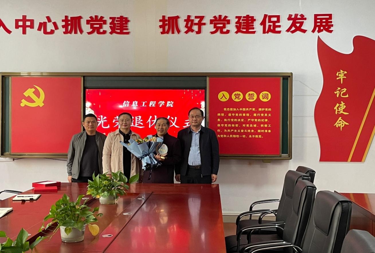 10月27日,信息工程学院在2215会议室举行陈克中教师光荣退休仪式。信息工程学院党总支书记、院长张宝华,党总支副书记周俊、副院长李娟、退休教师陈克中及学院教学与科研办公室、计算机基础教研室负责人参加了本次活动。会议由李娟主持。