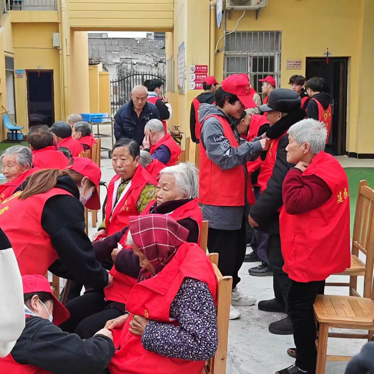一大早,30位青年志愿者们情绪高涨地来到目的地,大家分工协作、各司其职,帮助服务人员打扫卫生、整理内务,陪老人聊天、下象棋、散步,给老人捏捏肩、捶捶腿。多才多艺的志愿者为老人们献上了热情悠扬的歌唱,他们和老人一起做手势舞,现场欢笑声不断。
