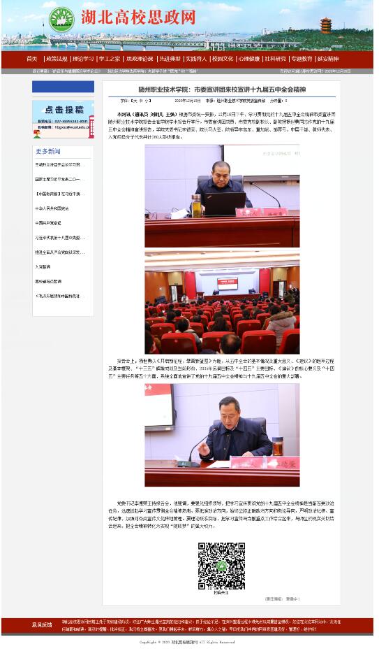 下一条:学习强国:湖北省委宣讲团到随州职院宣讲五中全会精神
